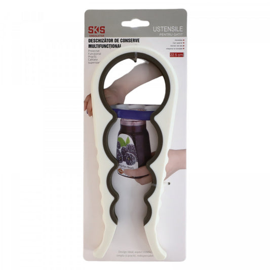 Deschizator sticle si borcane din plastic si silicon, 16 cm, alb