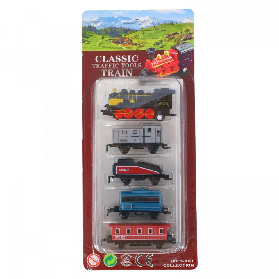 Set Tren si 4 locomotive, Die-Cast, LY517, 6 cm, Multicolor