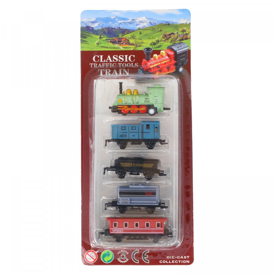 Set Tren si 4 locomotive, Die-Cast, LY520, 6 cm, Multicolor