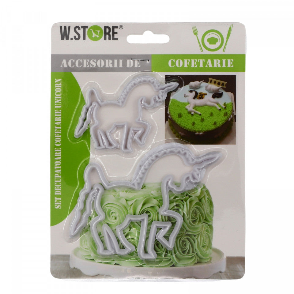 - Set 2 buc, Matrita / sablon pentru cofetarie, din silicon, forma Unicorn, 12 x 8 cm / 8 x 5 cm, Alb