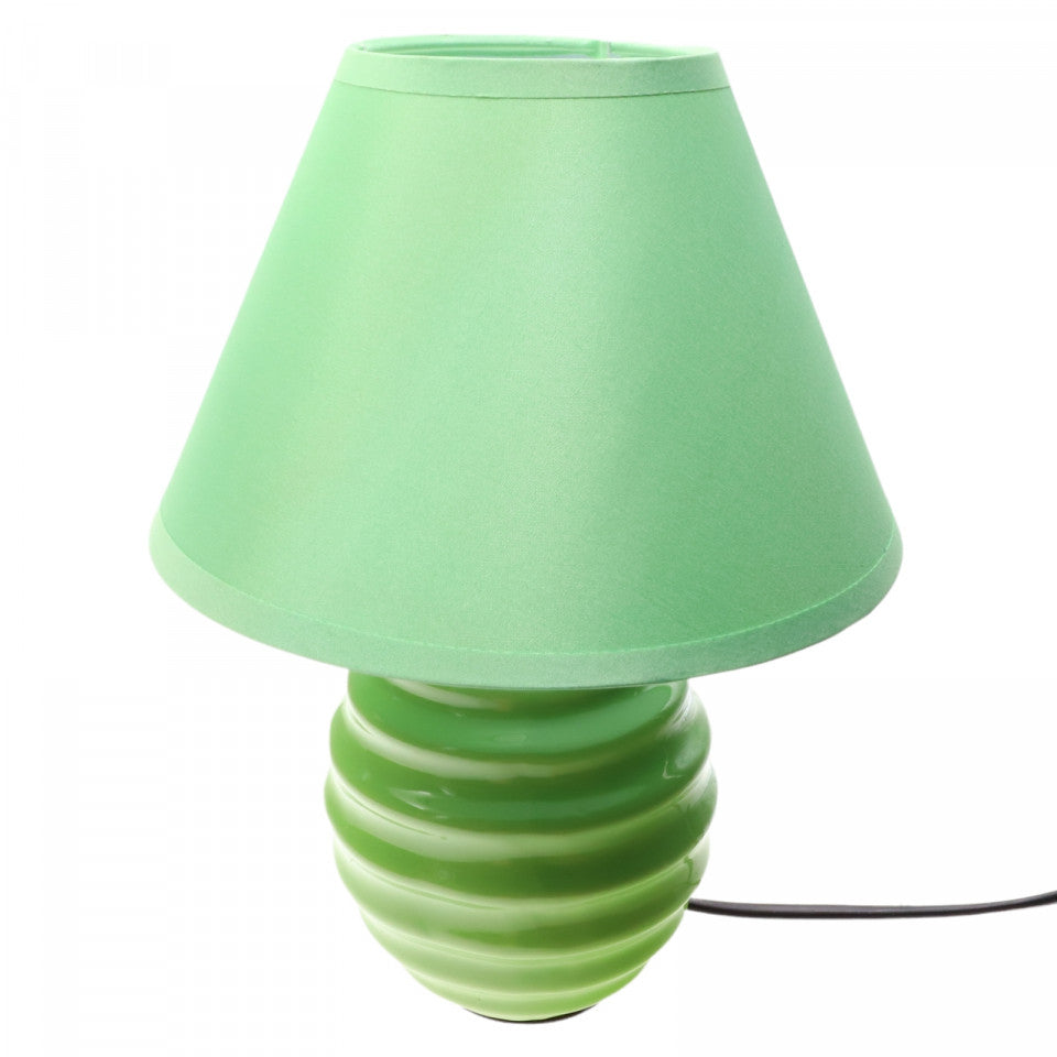 Veioza din ceramica, abajur textil, E14, cu intrerupator, NO2048, 25 x 17.5cm, Verde