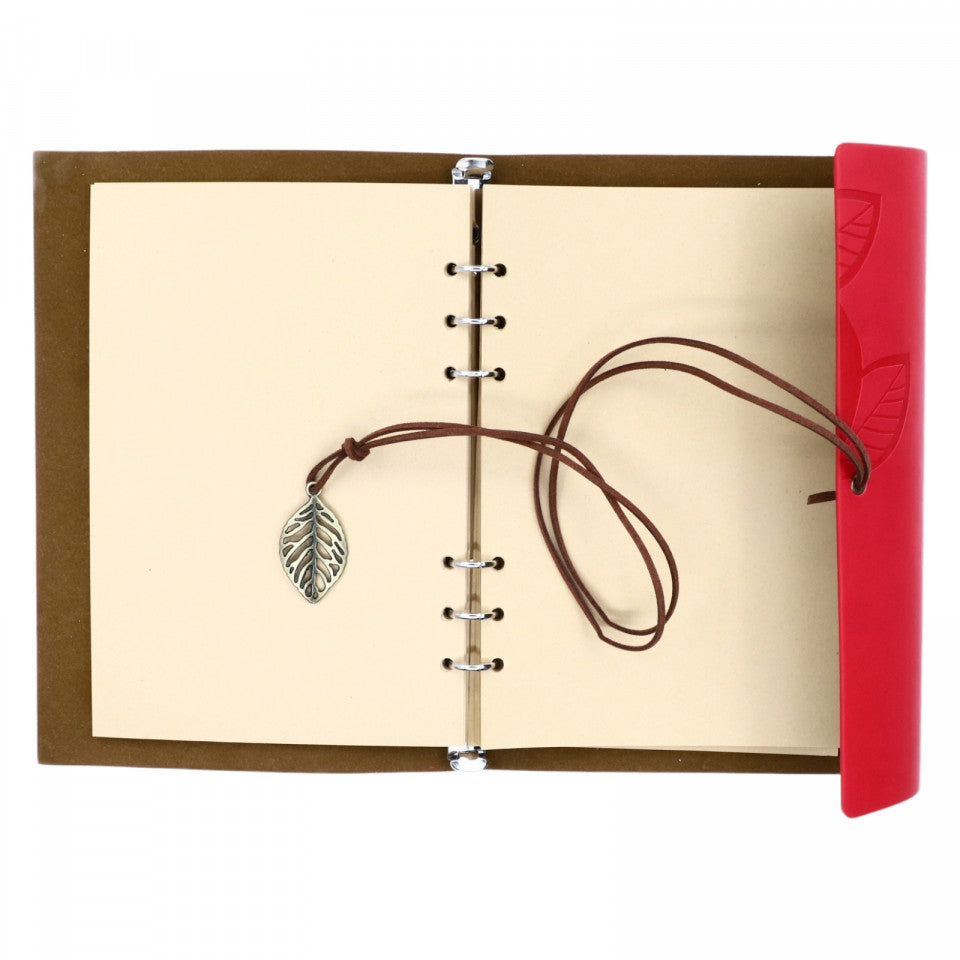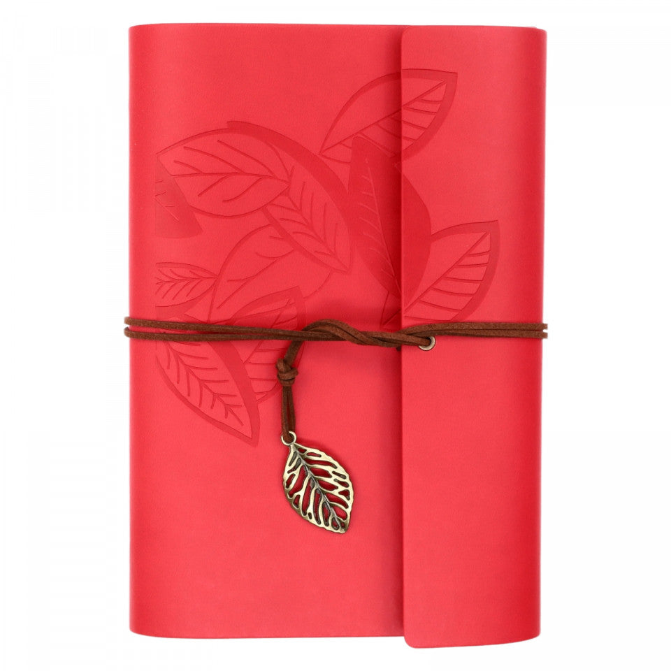 Agenda tip jurnal de calatorie, Coperta din piele ecologica, Vintage, 23 x 16 cm, Nedatata, Rosu