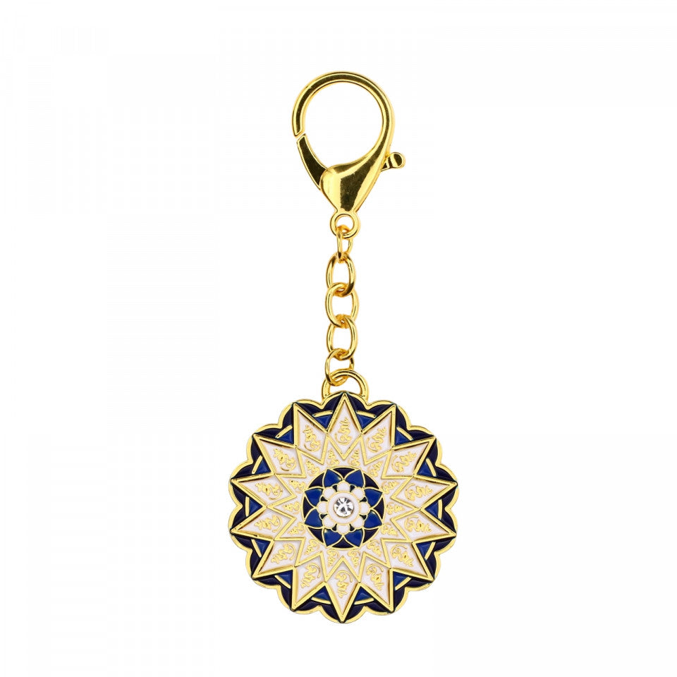 Amuleta de protectie cu Silaba HUM si lotus, tip breloc, Feng Shui, 5 cm, Multicolor