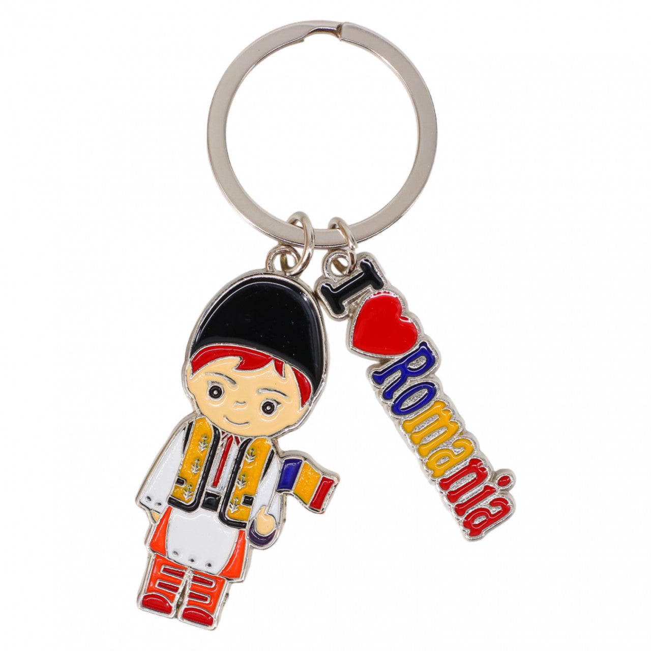 Breloc, I Love Romania, Taranul Roman, NO628, 2.5 x 5.5 cm, Multicolor