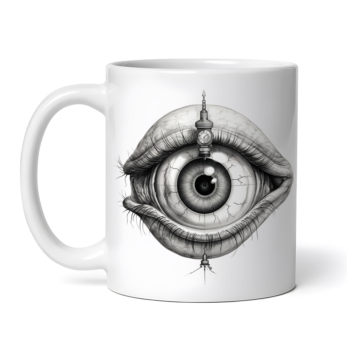 Cana ceramica, Anatomie antica ciudata masurarea ochiului, NO2921, 330 ml, Multicolor