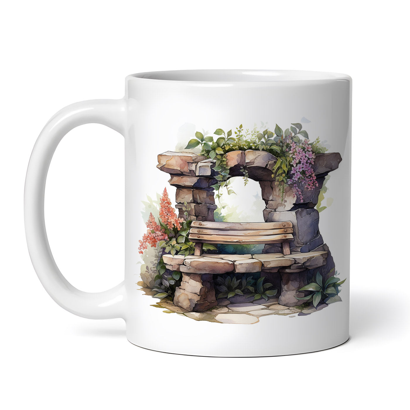 Cana ceramica, Banca de piatra cu spatar de lemn, NO4988, 330 ml, Multicolor