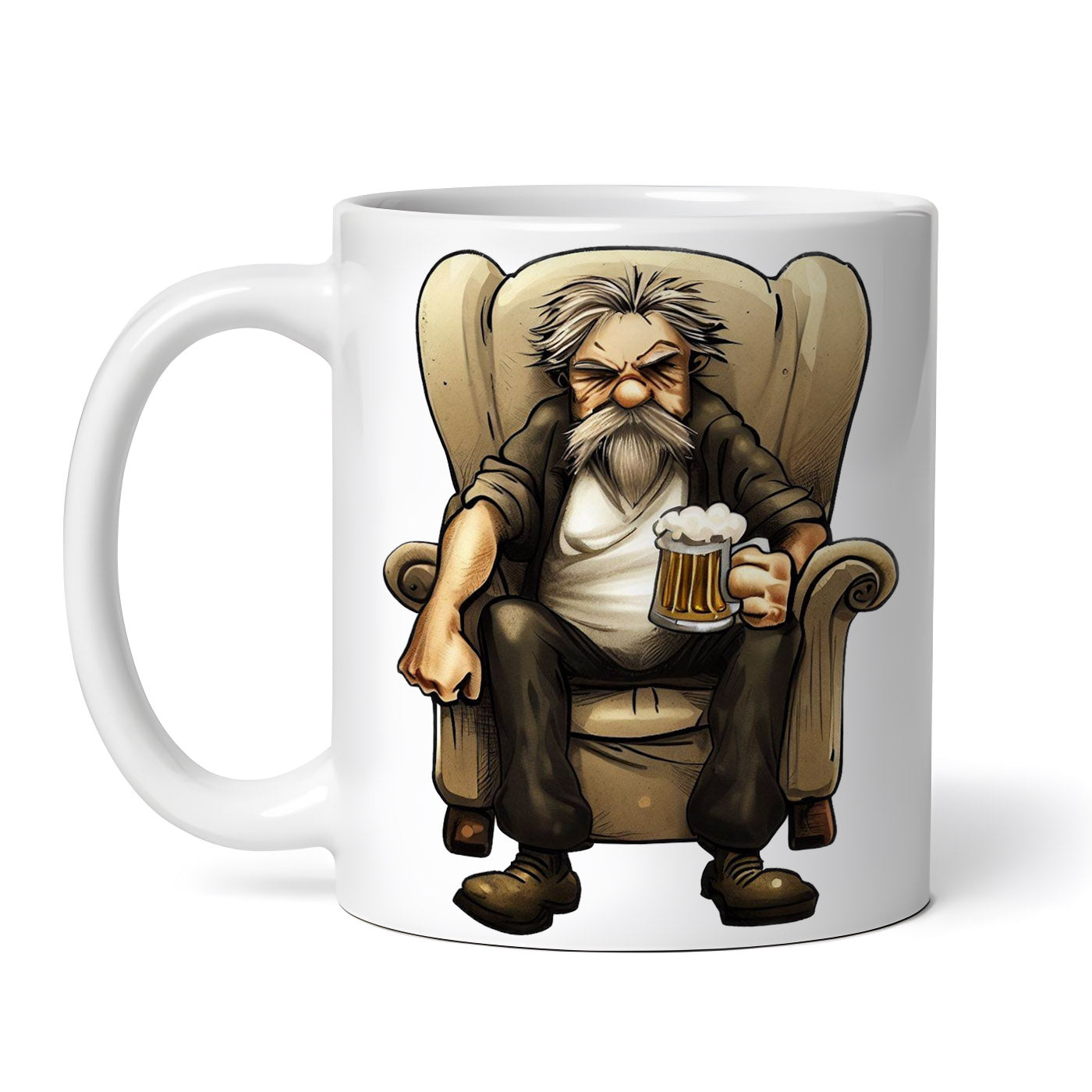 Cana ceramica, Batranul ciufulit bea bere, NO5210, 330 ml, Multicolor