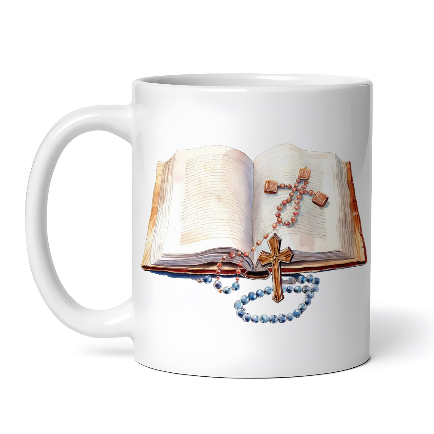 Cana ceramica, Biblia cu cruce si rosariu, NO751, 330 ml, Multicolor