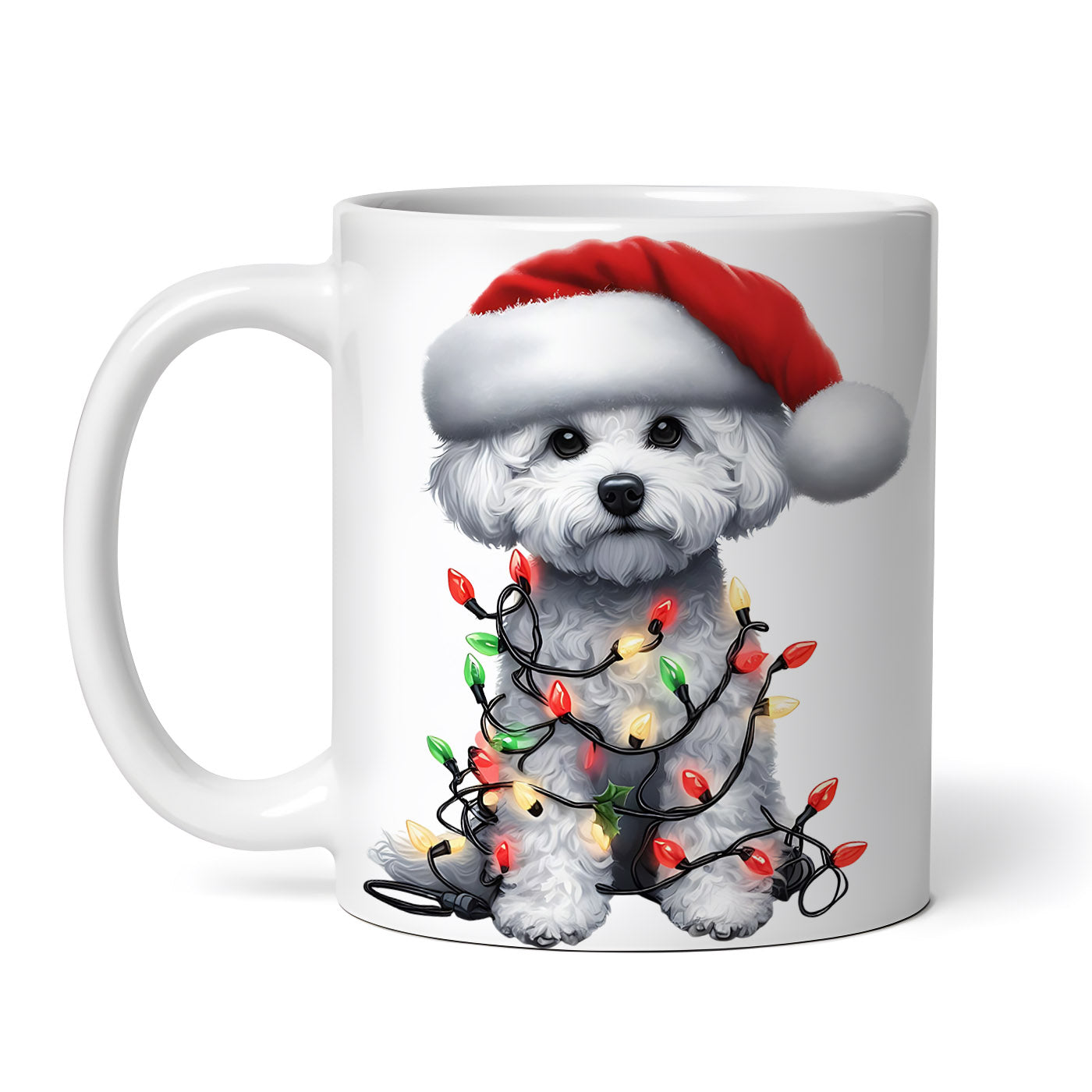 Cana ceramica, Bichon impodobit de craciun, NO993, 330 ml, Multicolor