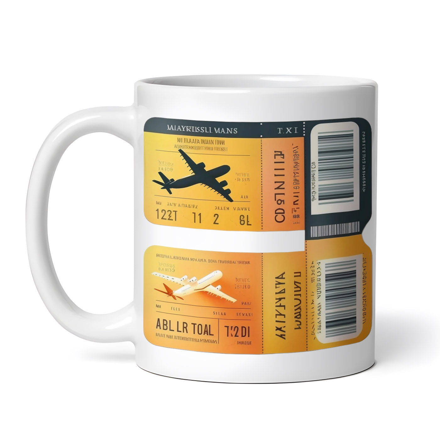 Cana ceramica, Bilete de avion, NO9357, 330 ml, Multicolor