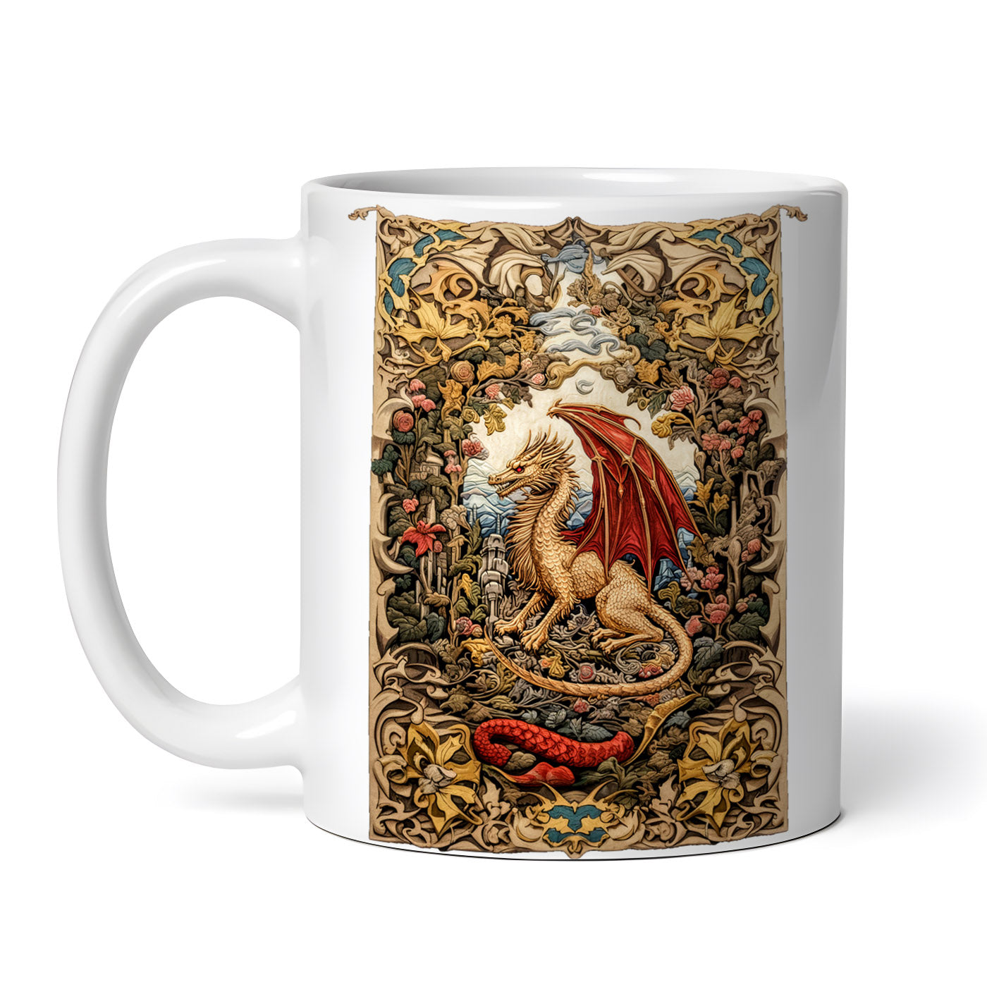 Cana ceramica, Blazon Dragonul de foc, NO911, 330 ml, Multicolor