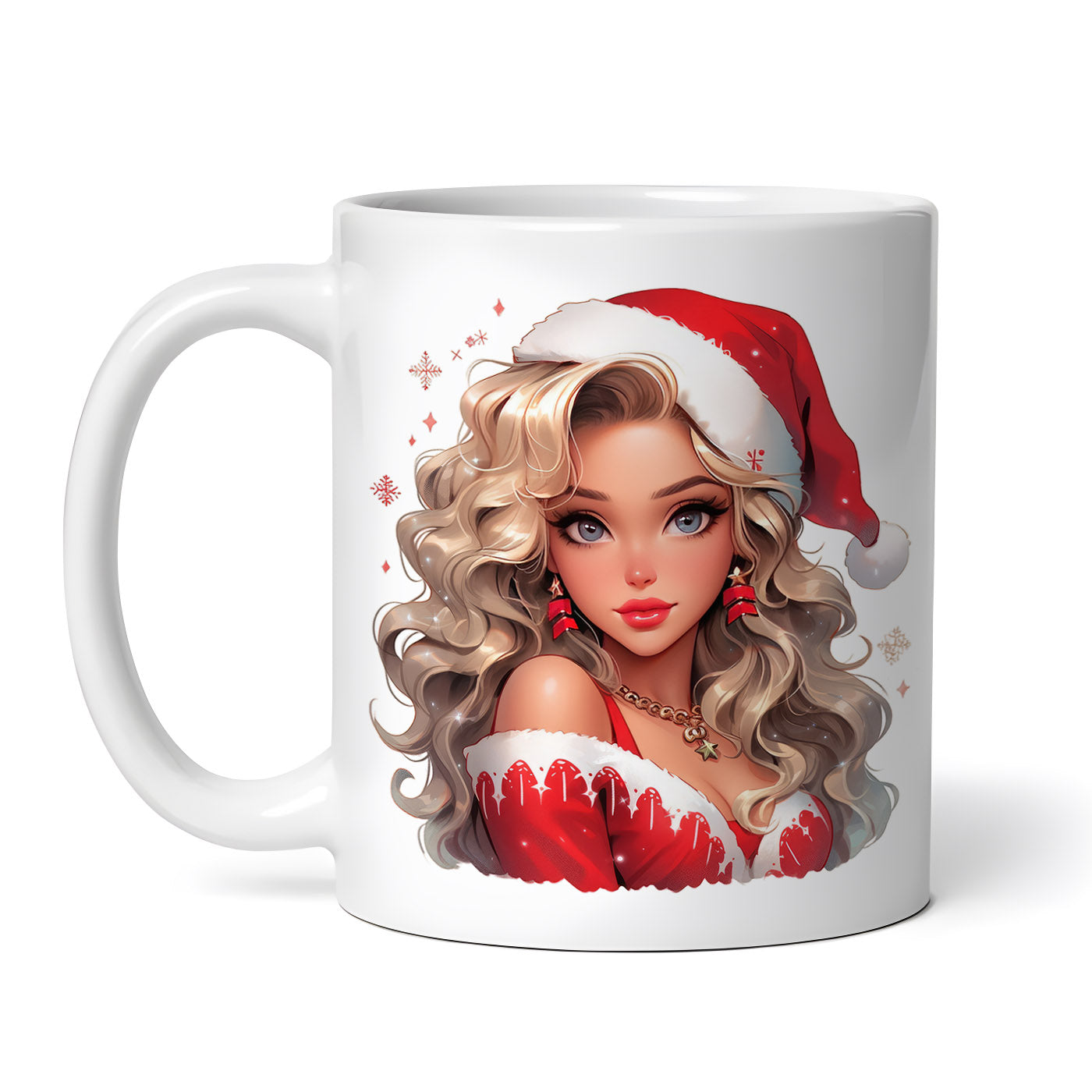 Cana ceramica, Blonda cu rochie regala de craciun, NO4312, 330 ml, Multicolor
