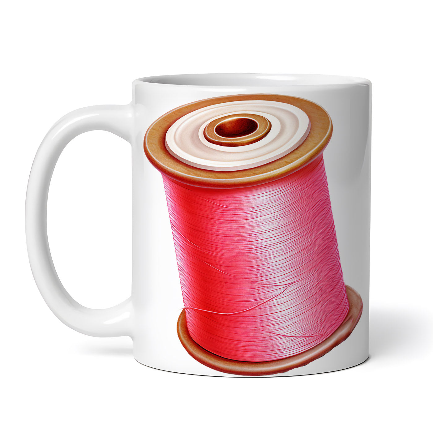 Cana ceramica, Bobina cu ata roz, NO3080, 330 ml, Multicolor