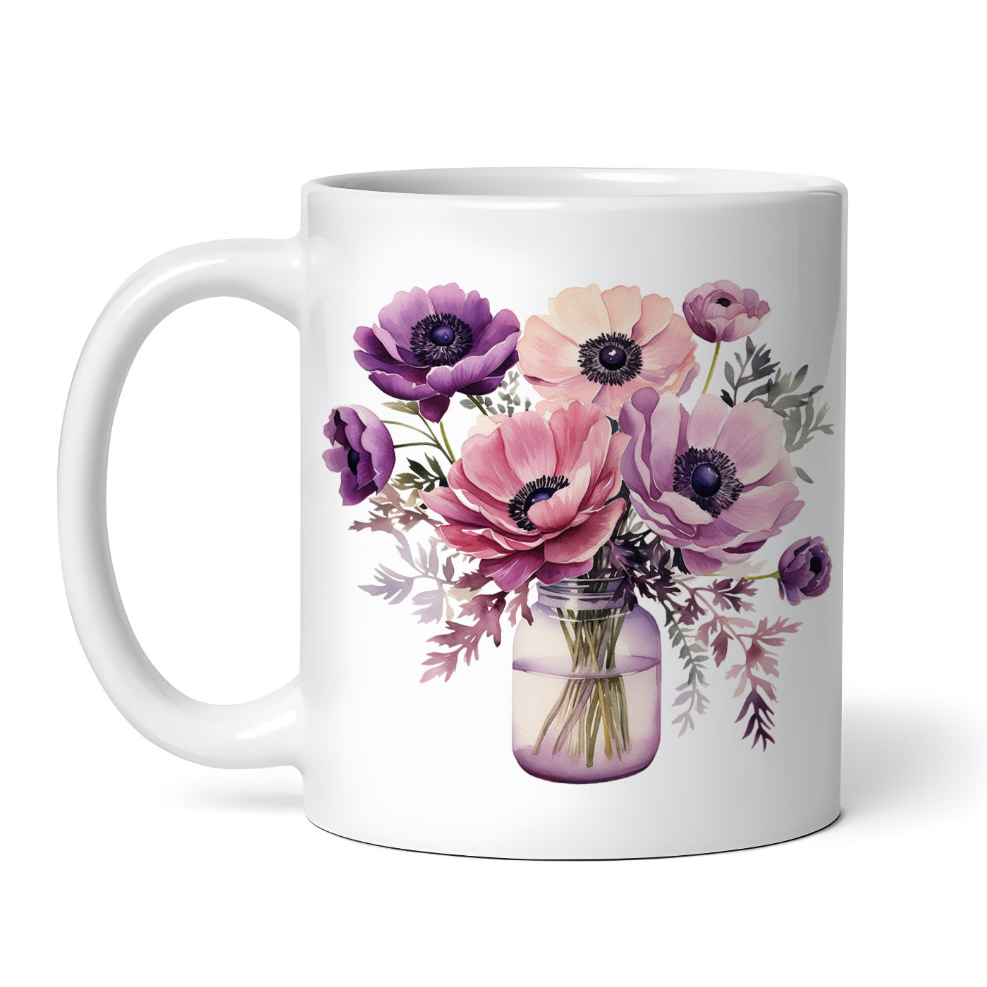 Cana ceramica, Borcan cu anemone, NO6044, 330 ml, Multicolor