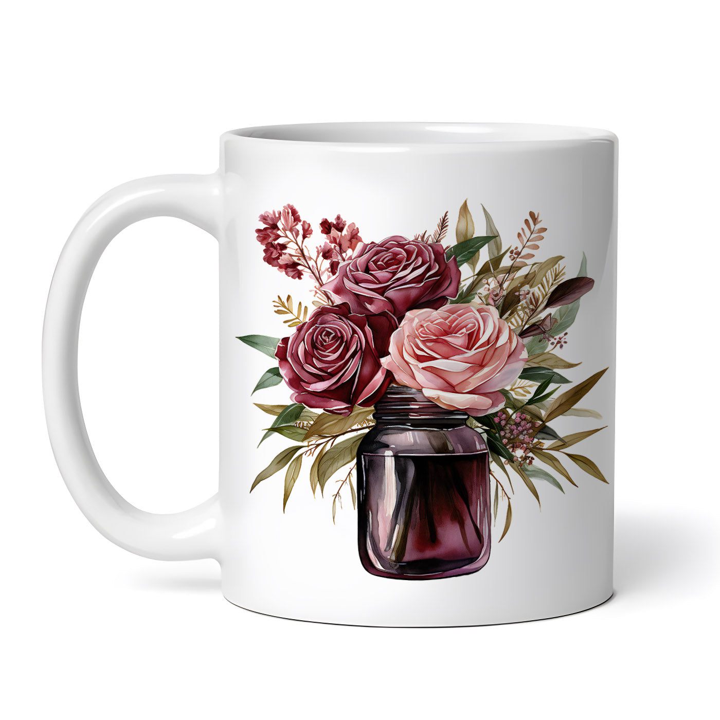 Cana ceramica, Borcan cu flori rosii si roz, NO4440, 330 ml, Multicolor