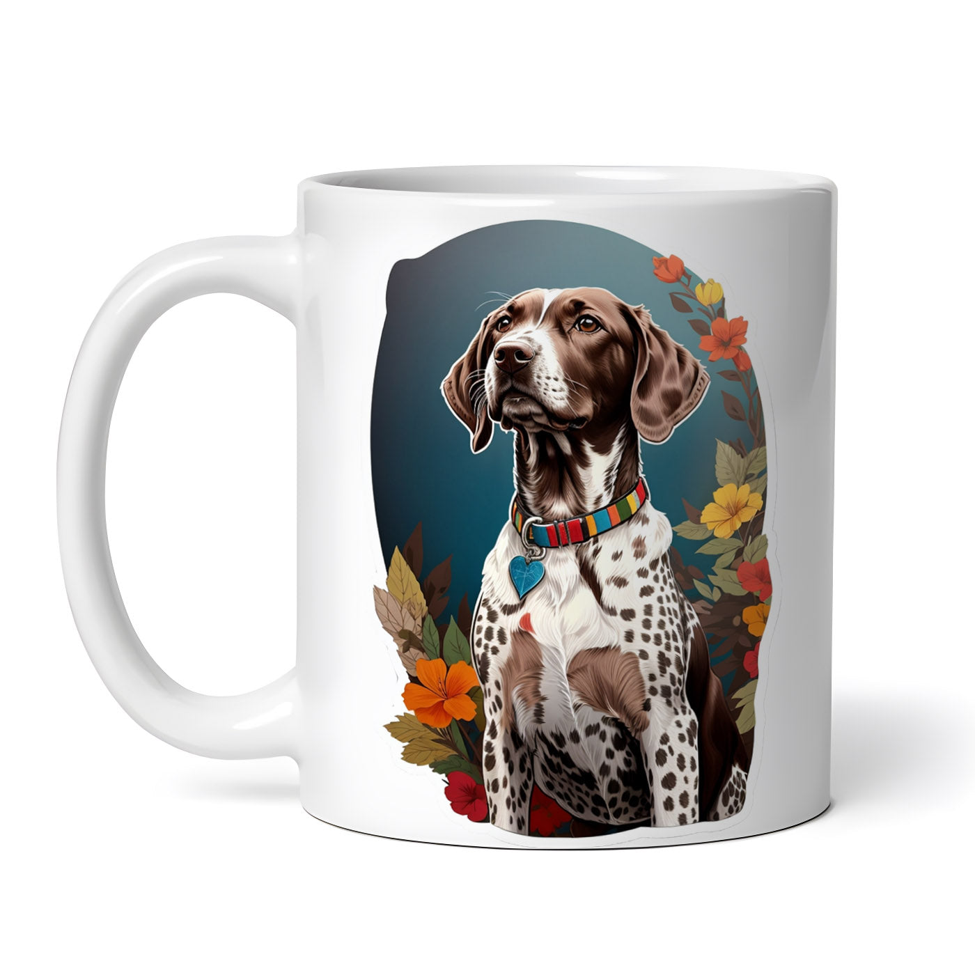 Cana ceramica, Brac german cu zgarda si flori, NO8239, 330 ml, Multicolor