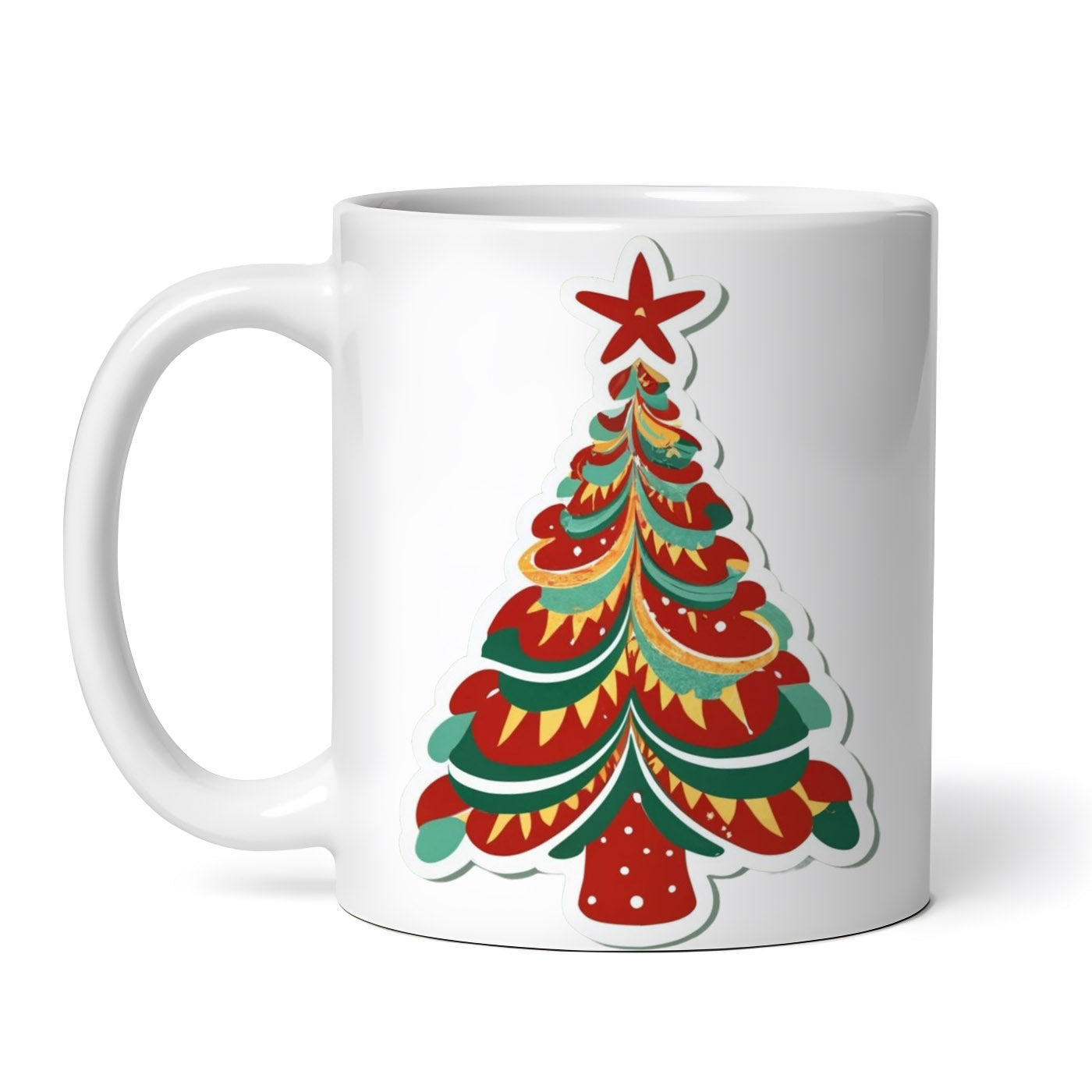 Cana ceramica, Brad cu stea rosie, NO088, 330 ml, Multicolor