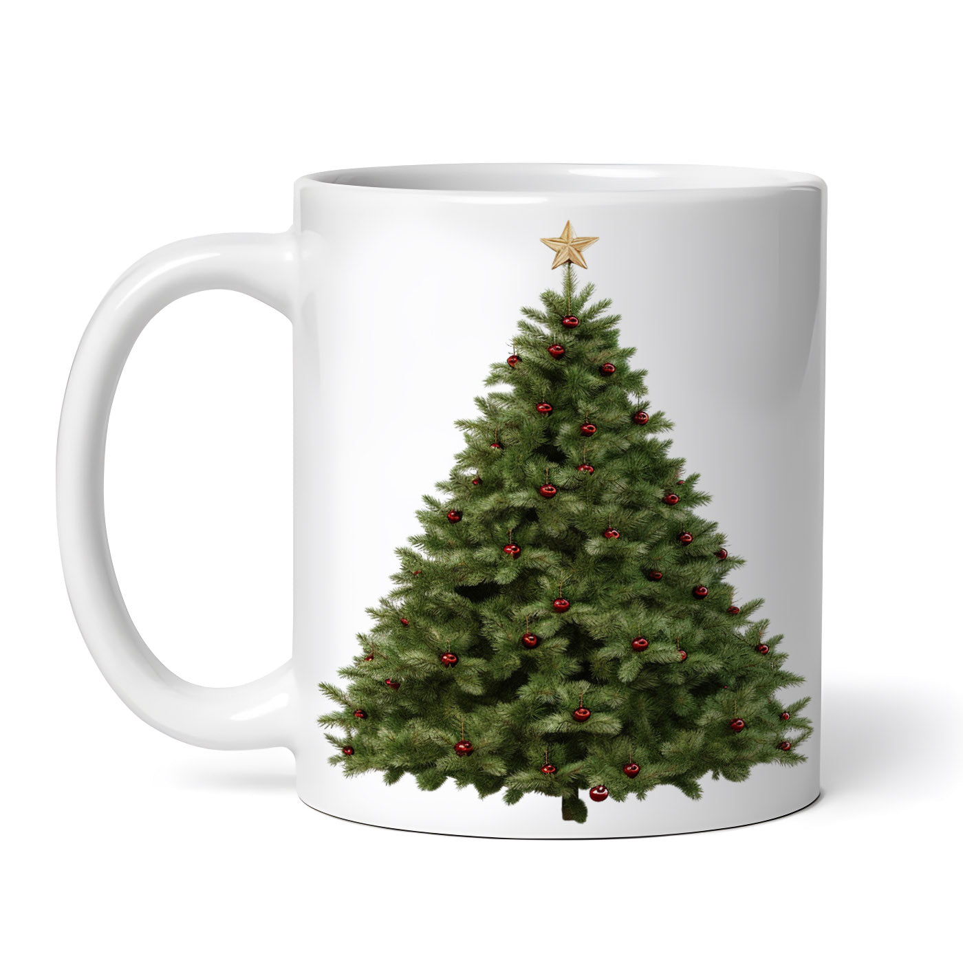 Cana ceramica, Brad de craciun cu globuri rosii, NO3182, 330 ml, Multicolor