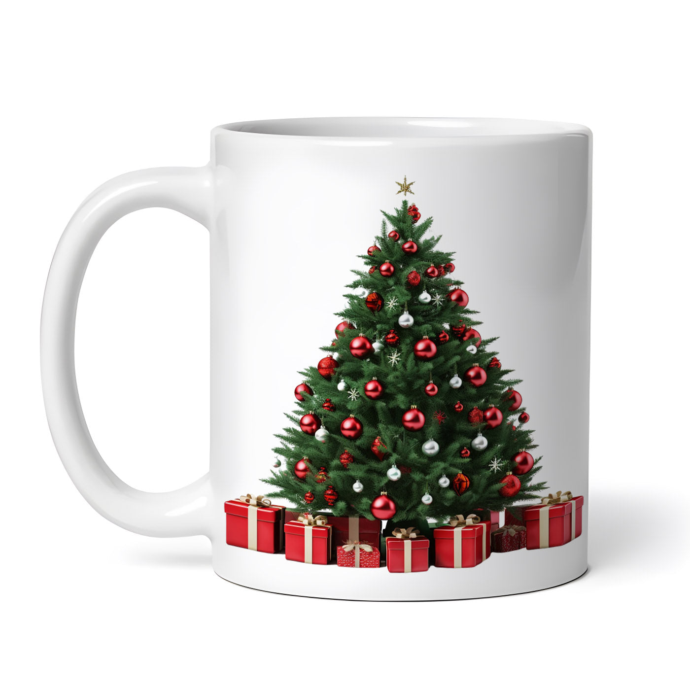 Cana ceramica, Brad de craciun cu globuri si stelute, NO5741, 330 ml, Multicolor