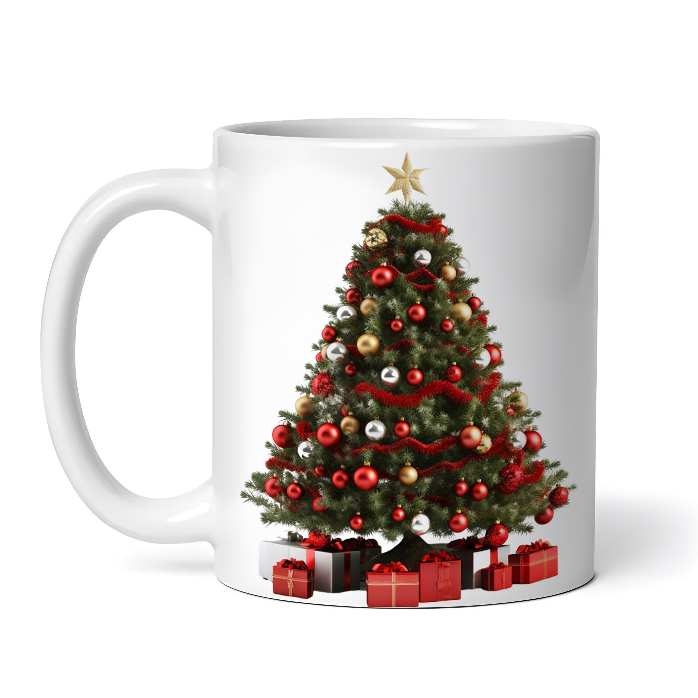Cana ceramica, Brad de craciun plin cu globuri, NO6058, 330 ml, Multicolor