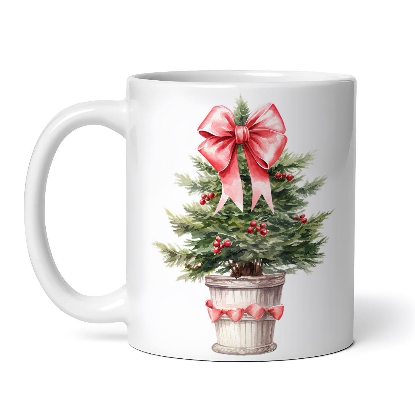 Cana ceramica, Bradul cu funda rosie, NO2357, 330 ml, Multicolor