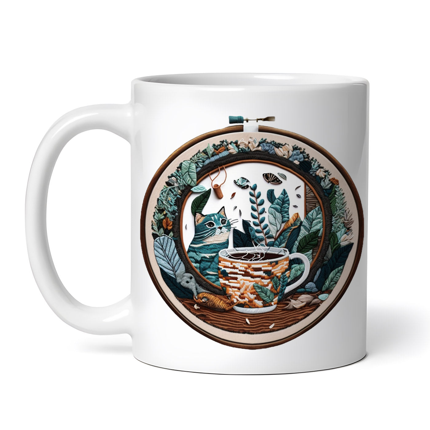 Cana ceramica, Broderie cu ceasca de cafea, NO9464, 330 ml, Multicolor