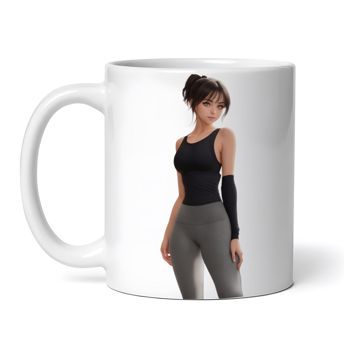 Cana ceramica, Bruneta cu silueta, NO6912, 330 ml, Multicolor