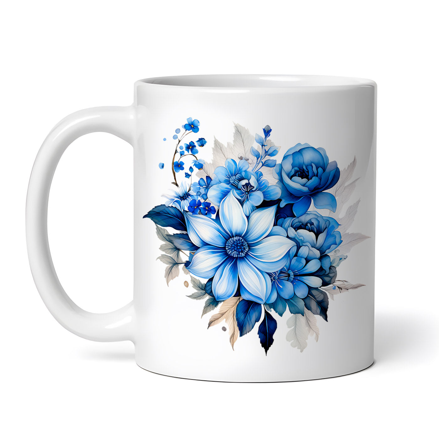 Cana ceramica, Buchet cu flori albastre, NO5493, 330 ml, Multicolor