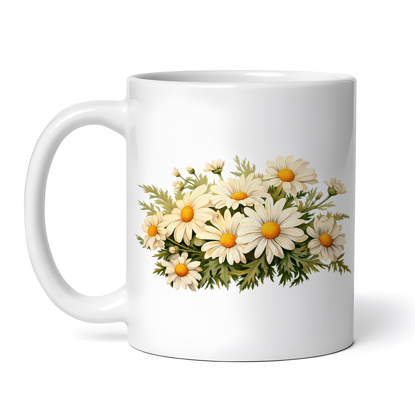 Cana ceramica, Buchet cu flori albe, NO2727, 330 ml, Multicolor