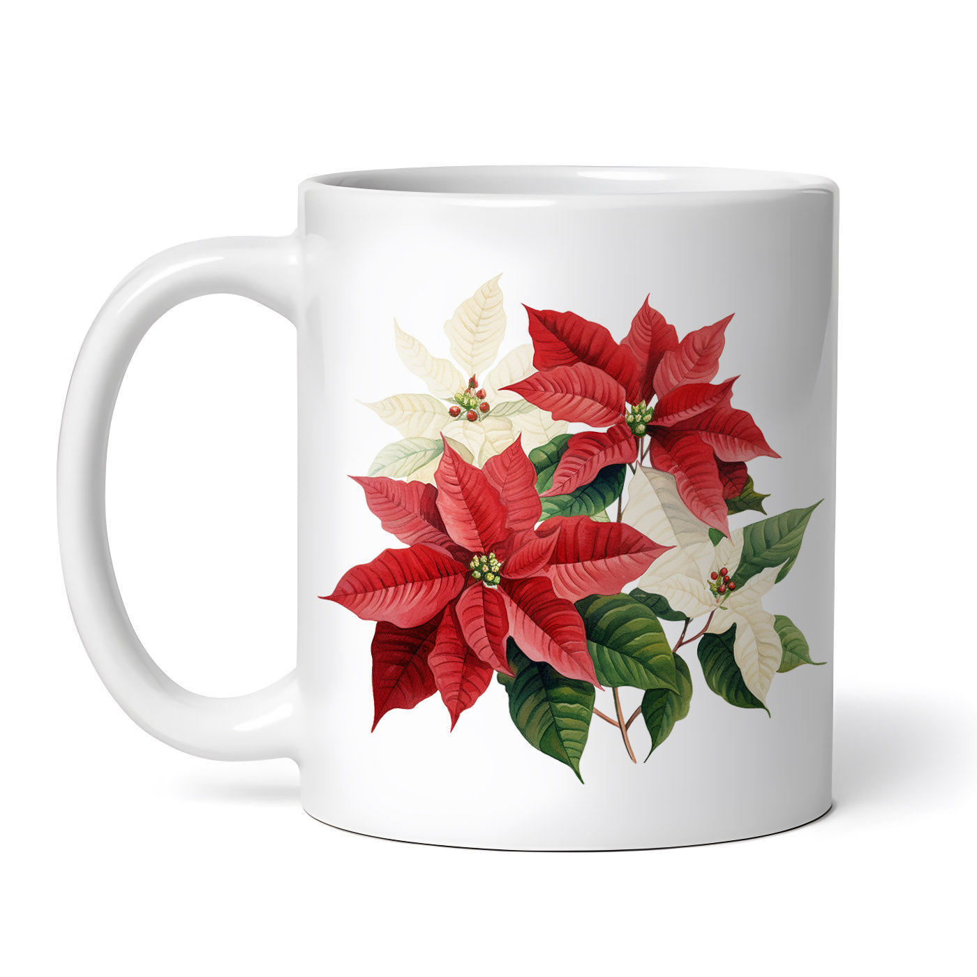 Cana ceramica, Buchet cu flori de craciun, NO079, 330 ml, Multicolor