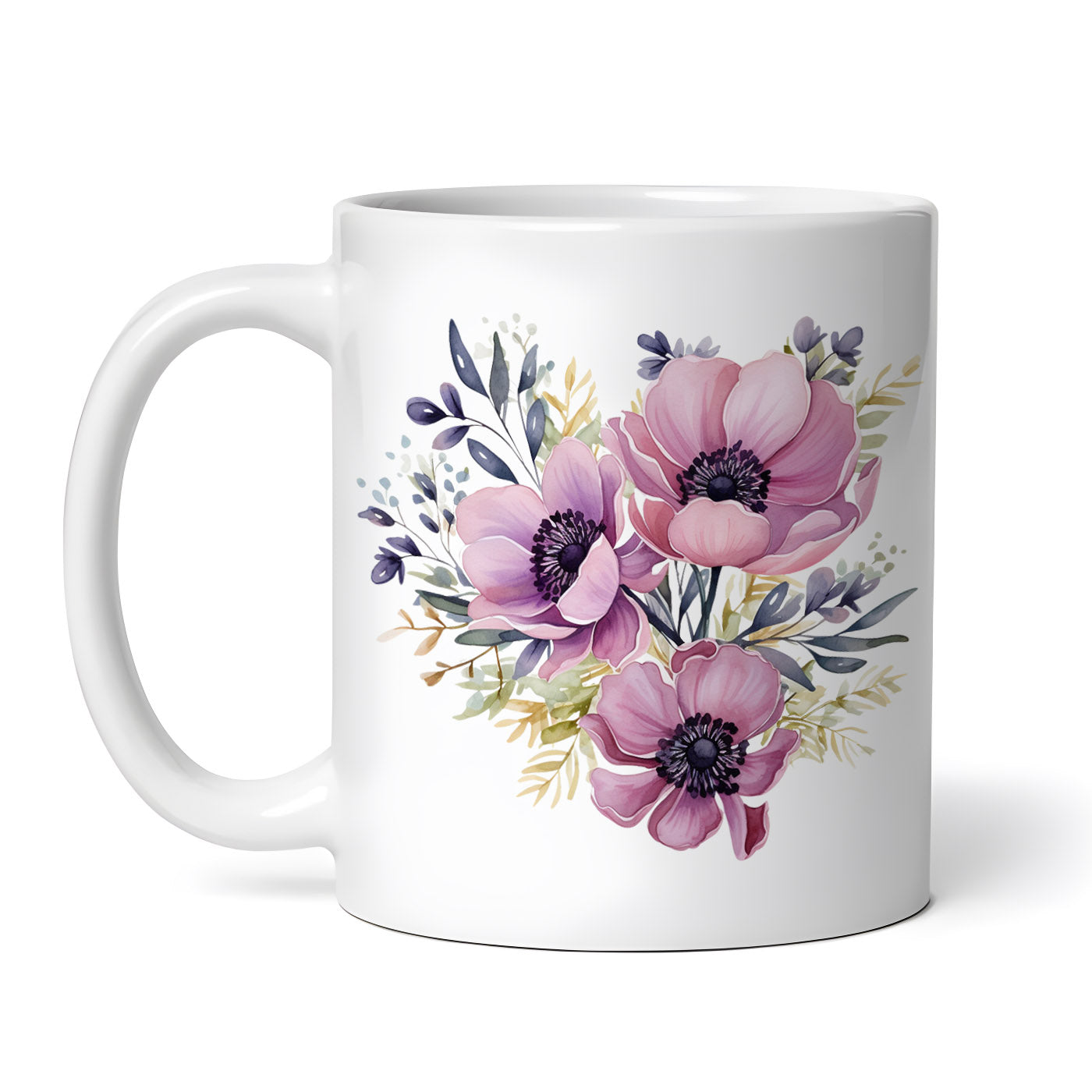 Cana ceramica, Buchet de anemone roz, NO4462, 330 ml, Multicolor