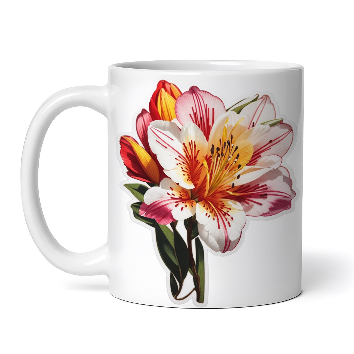 Cana ceramica, Buchet de astromeria fara frunze, NO7614, 330 ml, Multicolor