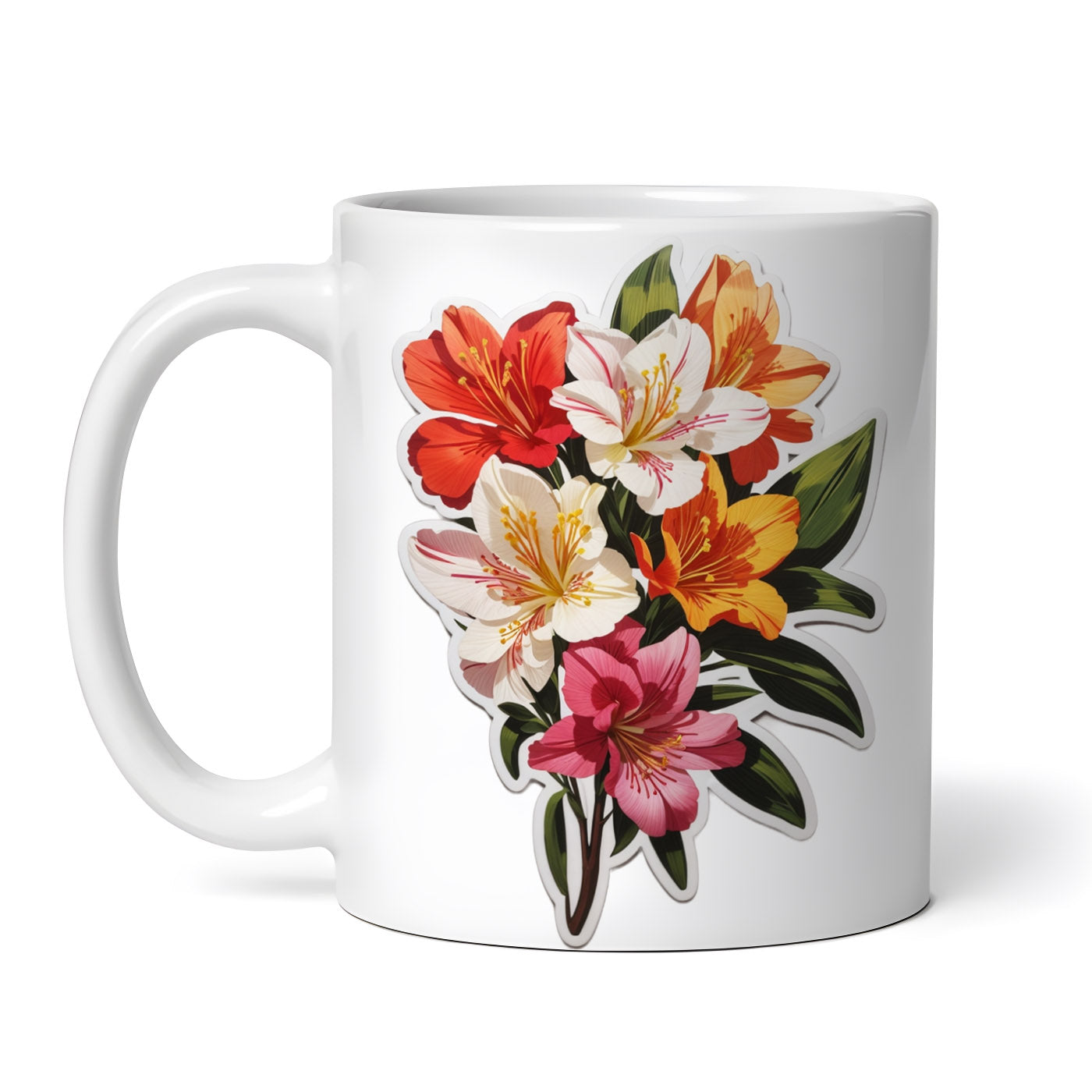 Cana ceramica, Buchet de astromeria, NO7611, 330 ml, Multicolor