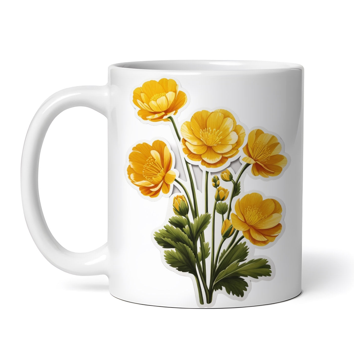 Cana ceramica, Buchet de flori Buttercup, NO7896, 330 ml, Multicolor