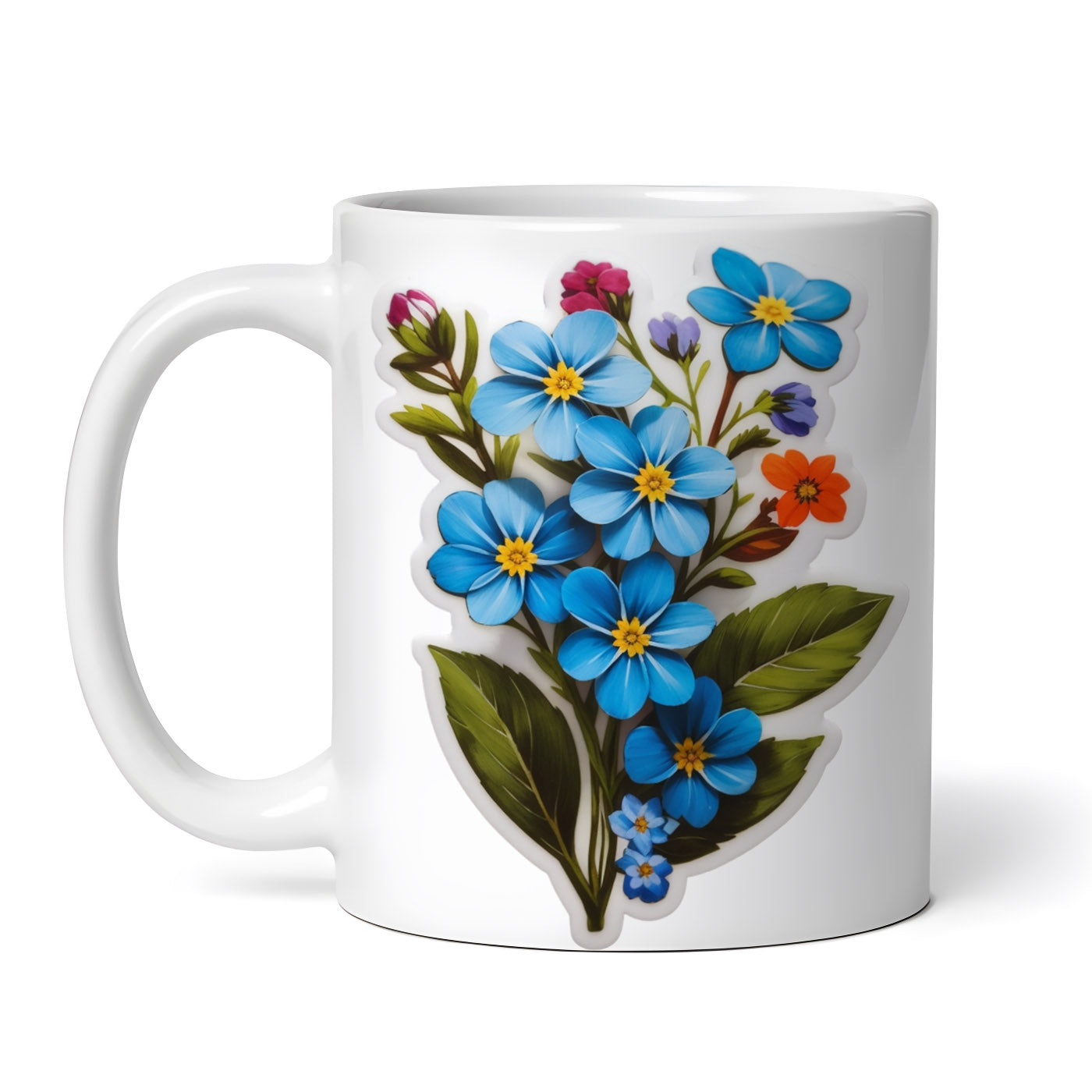 Cana ceramica, Buchet de flori de Nu ma uita, NO8176, 330 ml, Multicolor