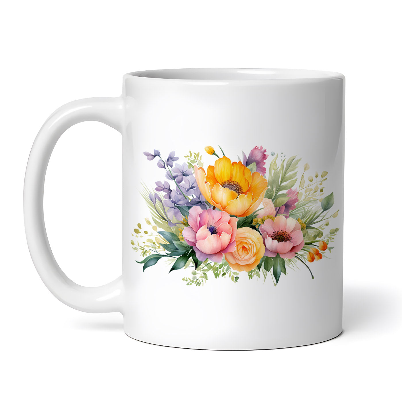 Cana ceramica, Buchet de flori Veselia, NO2300, 330 ml, Multicolor