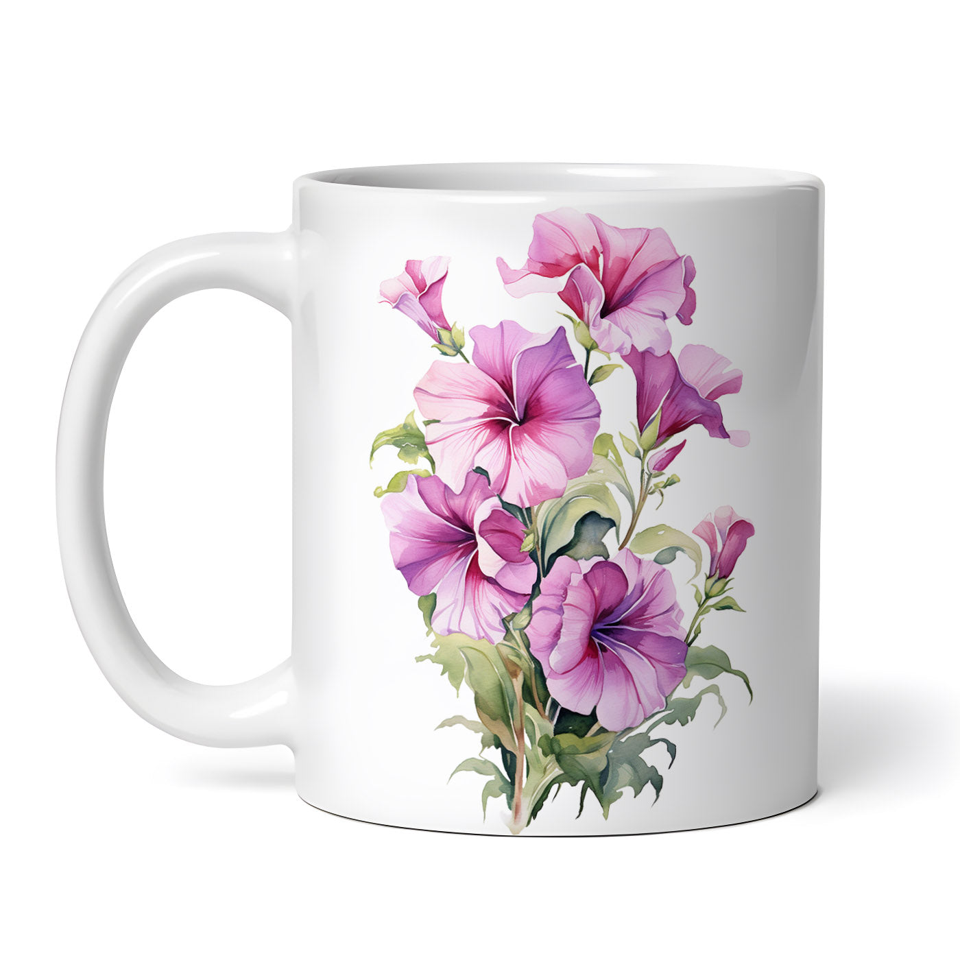 Cana ceramica, Buchet de petunii roz, NO1020, 330 ml, Multicolor