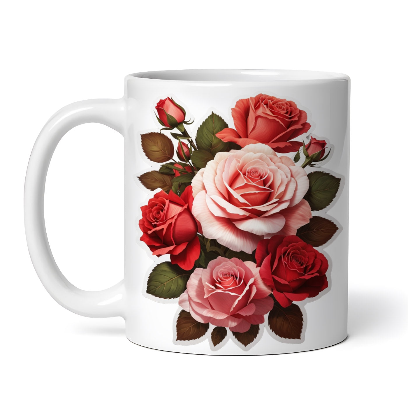 Cana ceramica, Buchet de trandafiri, NO8807, 330 ml, Multicolor