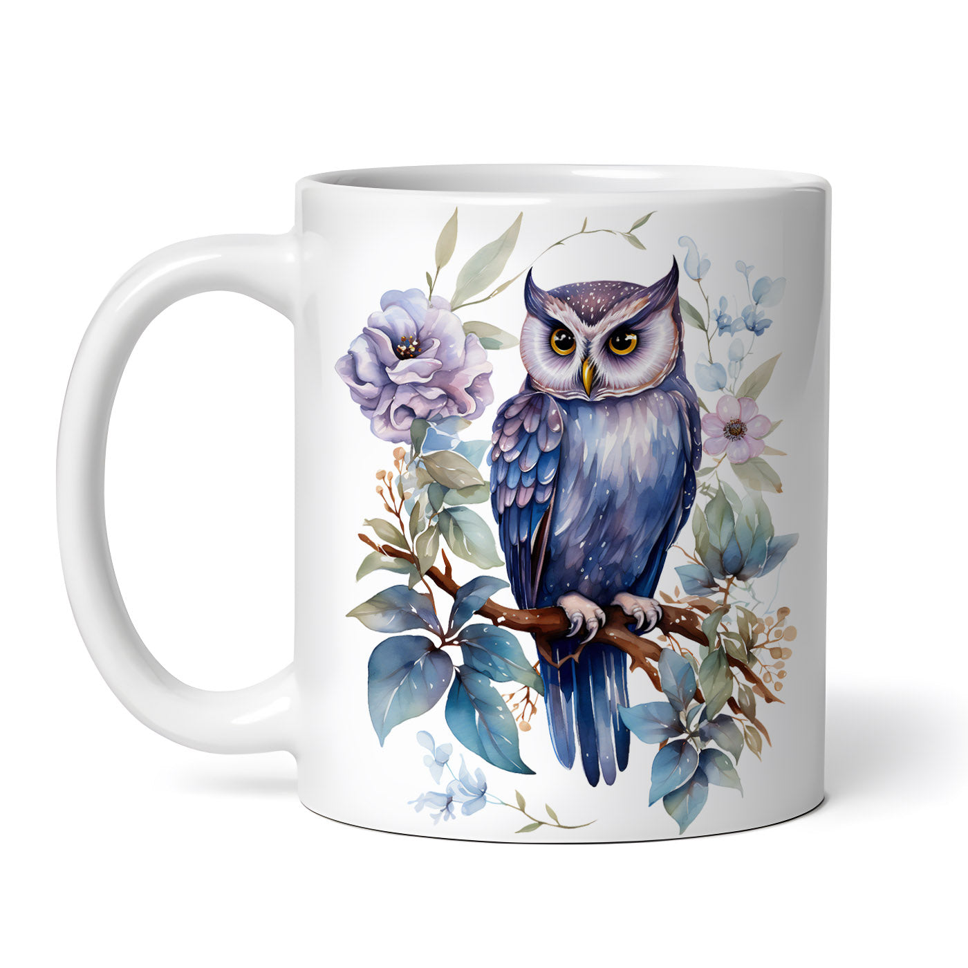 Cana ceramica, Bufnita cu flori mov, NO4328, 330 ml, Multicolor
