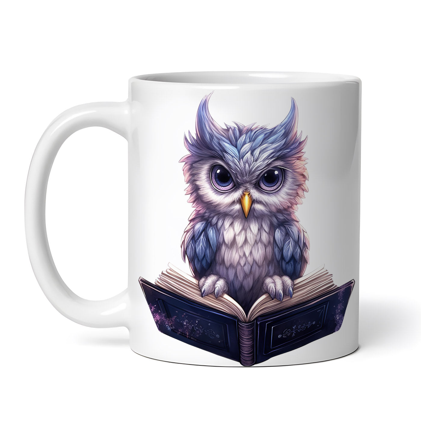 Cana ceramica, Bufnita magica pe carte, NO3779, 330 ml, Multicolor