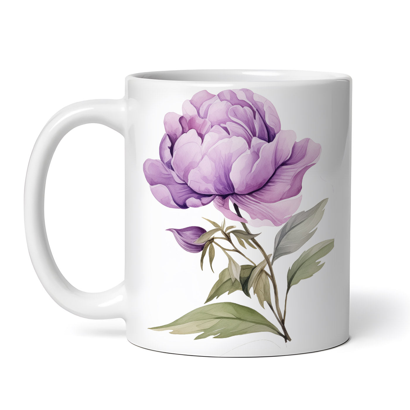 Cana ceramica, Bujor liliachiu, NO2838, 330 ml, Multicolor
