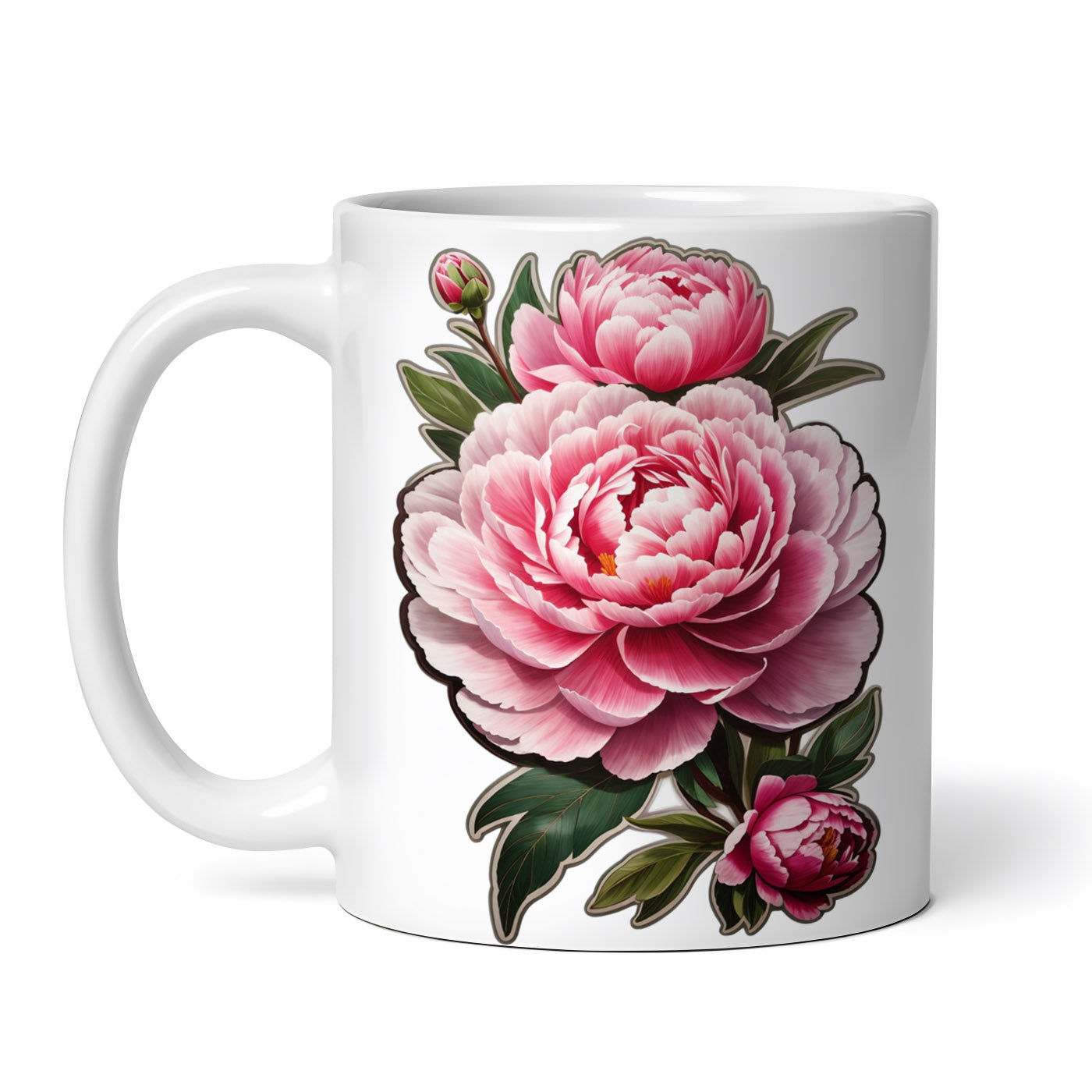 Cana ceramica, Bujori cu boboc, NO8689, 330 ml, Multicolor