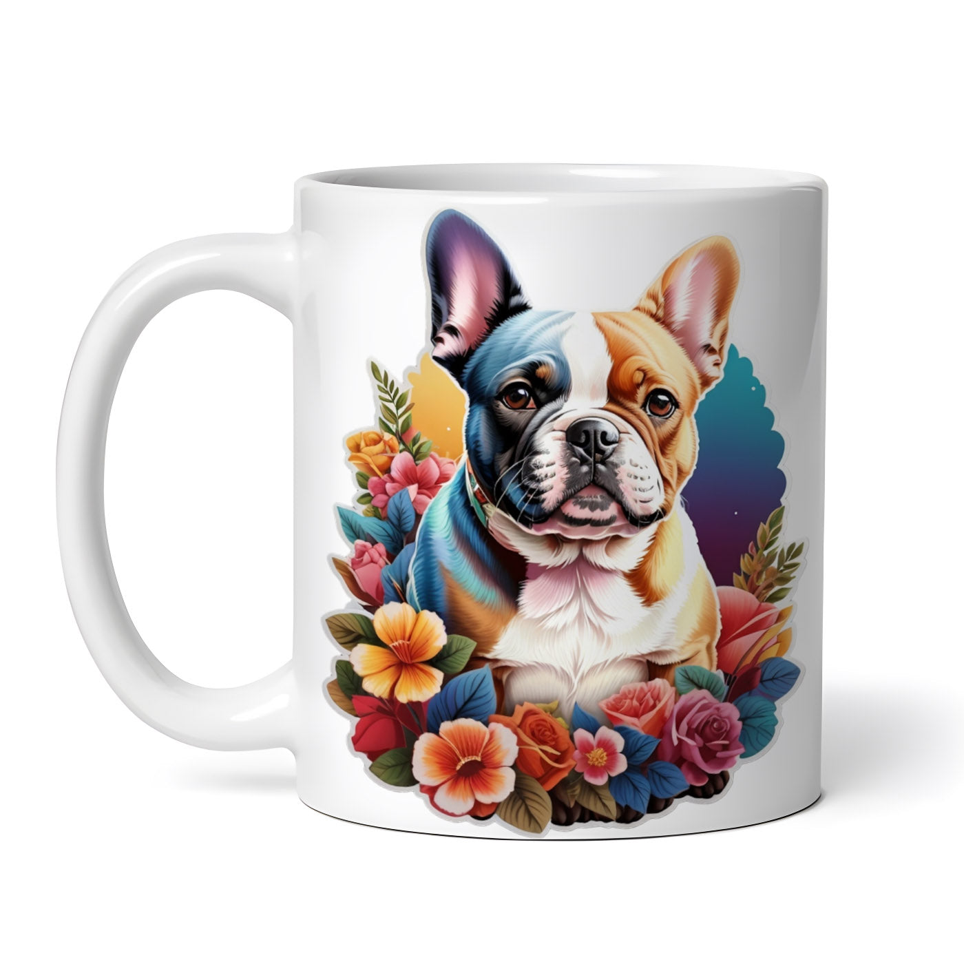 Cana ceramica, Buldog francez cu flori, NO8200, 330 ml, Multicolor