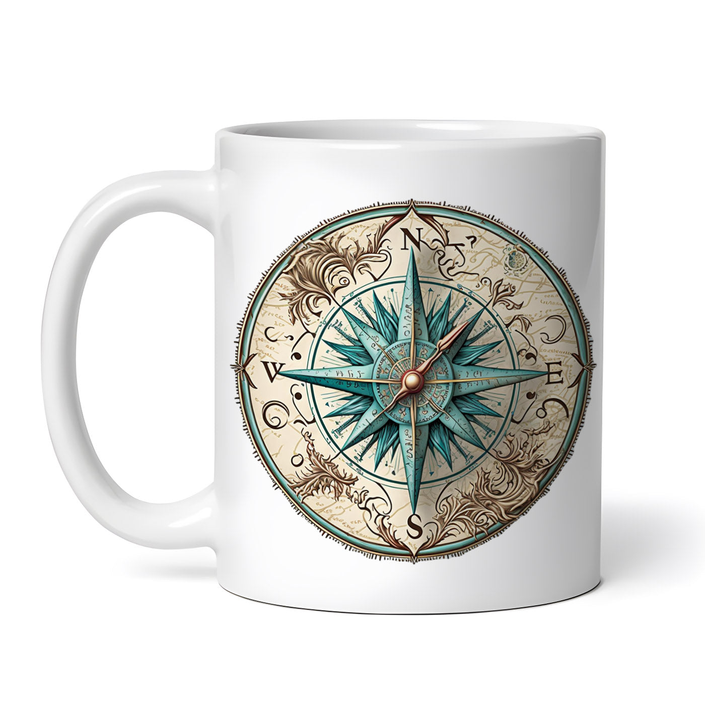 Cana ceramica, Busola retro, NO9478, 330 ml, Multicolor