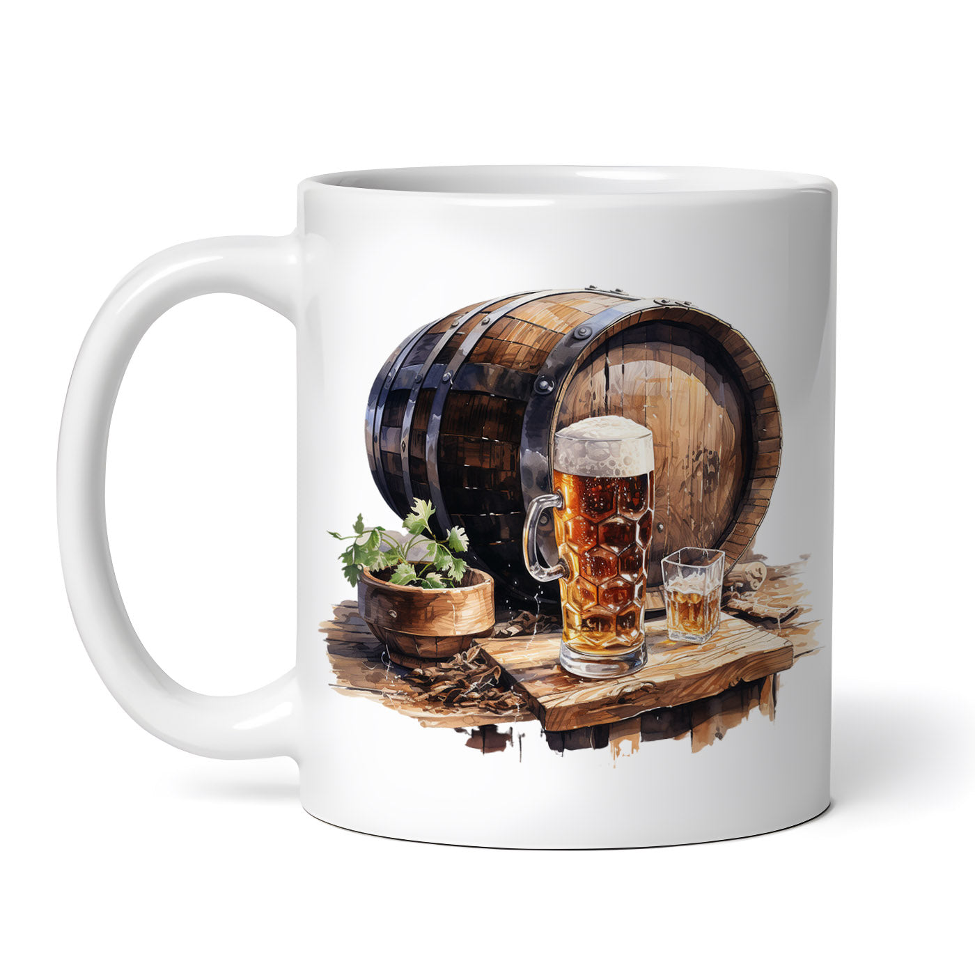 Cana ceramica, Butoi cu bere halba si castron de lemn cu verdeata, NO1336, 330 ml, Multicolor