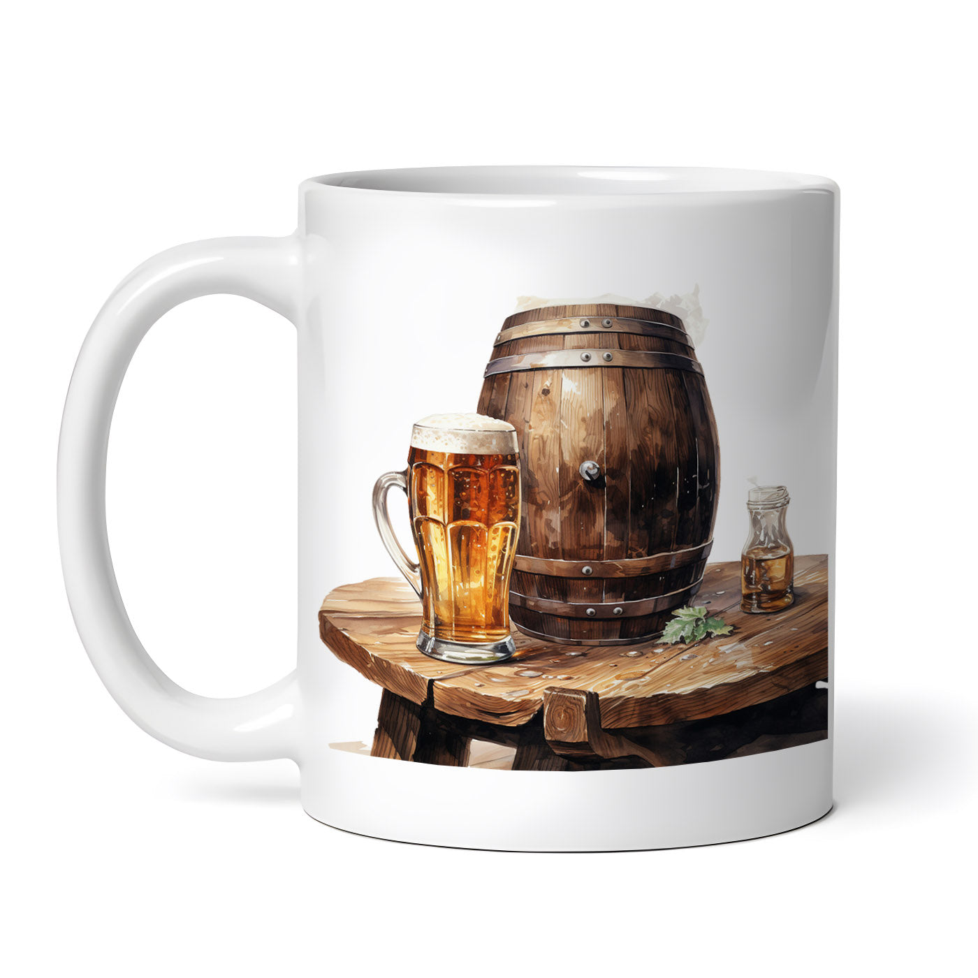 Cana ceramica, Butoi cu bere pe masa de lemn, NO2663, 330 ml, Multicolor