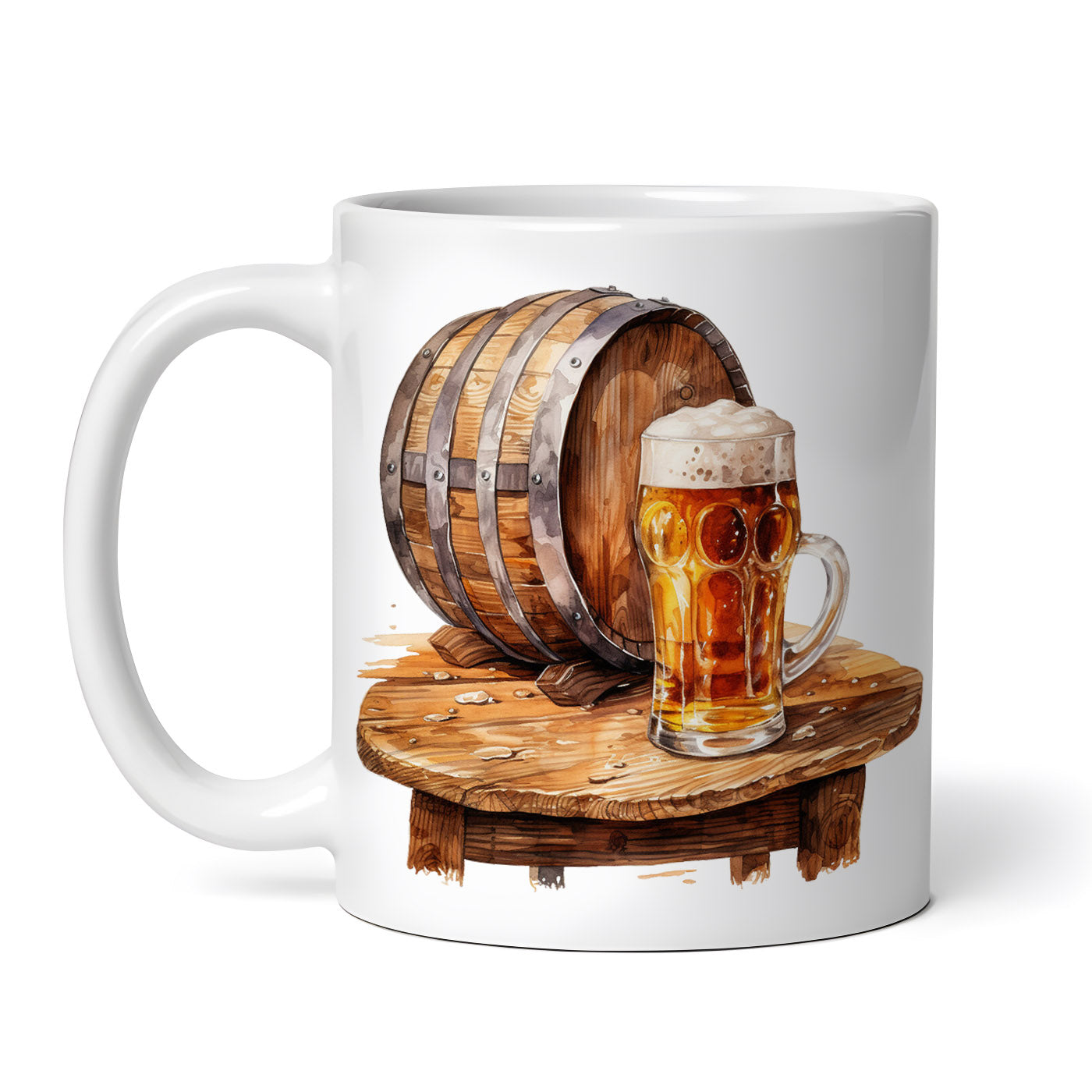 Cana ceramica, Butoi de bere si halba plina, NO1173, 330 ml, Multicolor