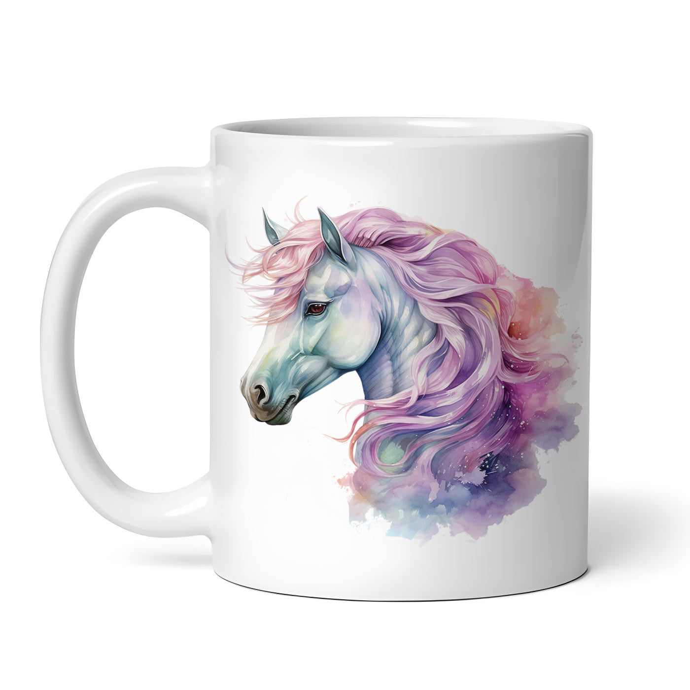 Cana ceramica, Cal cu coama roz, NO1643, 330 ml, Multicolor