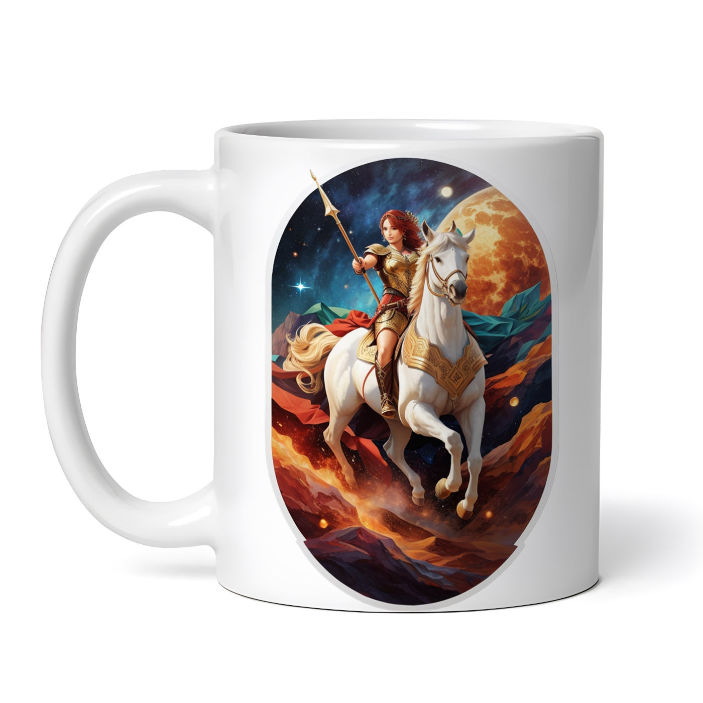 Cana ceramica, Calareata cu arc si sulita simbol sagetator, NO8827, 330 ml, Multicolor