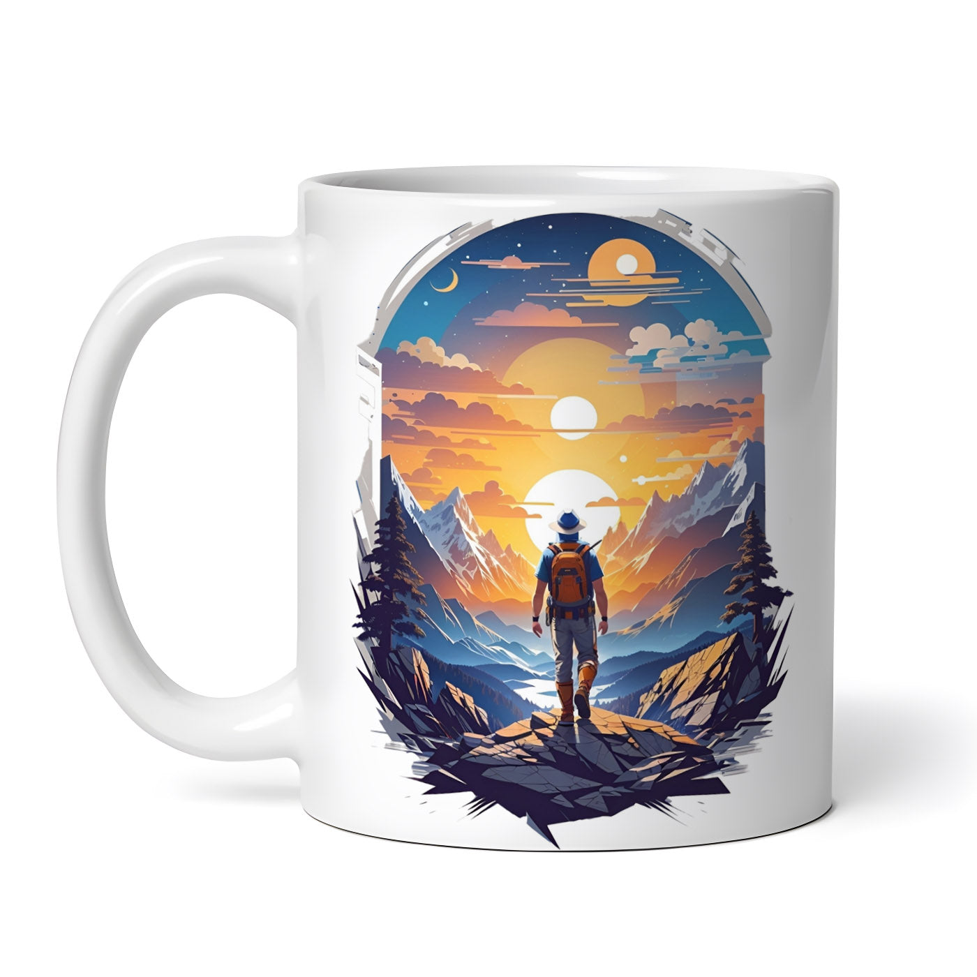Cana ceramica, Calator in apus, NO6986, 330 ml, Multicolor